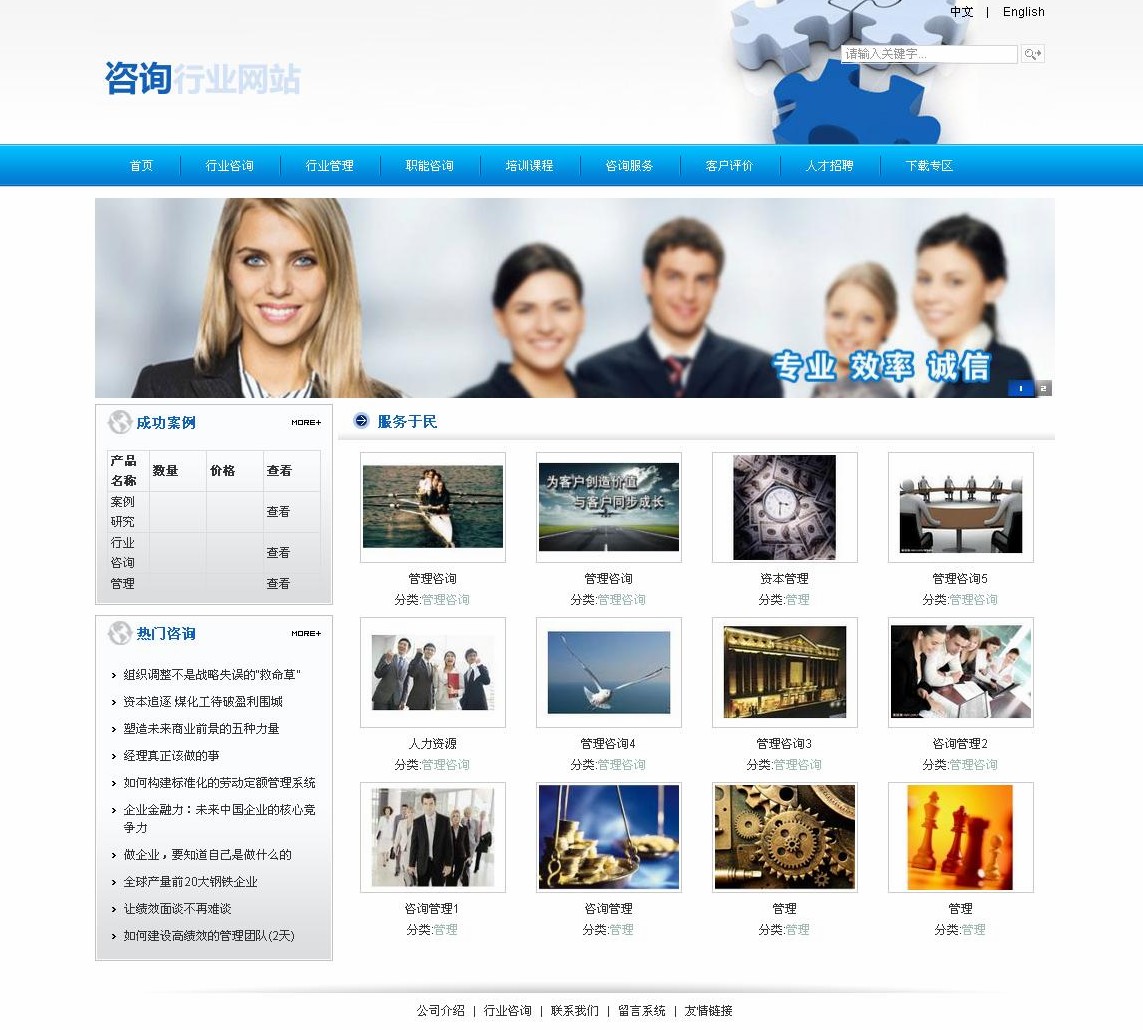 組織運營咨詢事業(yè)部: 企業(yè)全面管理診斷 戰(zhàn)略發(fā)展規(guī)劃 集團管控(母子公司管控) 流程優(yōu)化與再造 組織與職能設計 全面預算管理輔導人力資源咨詢事業(yè)部:人力資源管理診斷 崗位梳理與設計 崗位說明書編寫 工作分析與崗位評價 薪酬體系設計 績效管理體系設計 企業(yè)教育訓練體系輔導 干部梯隊建設輔導 股權激勵體系設計 定崗定編輔導 常年人力資源管理顧問